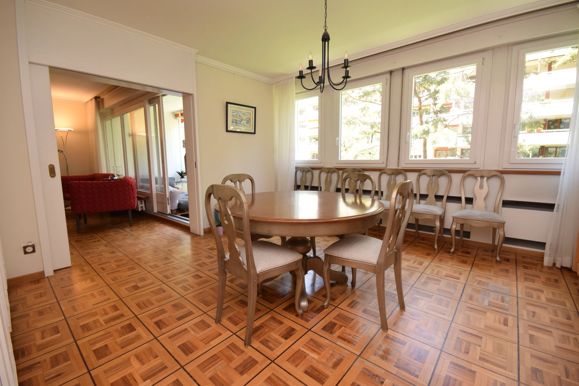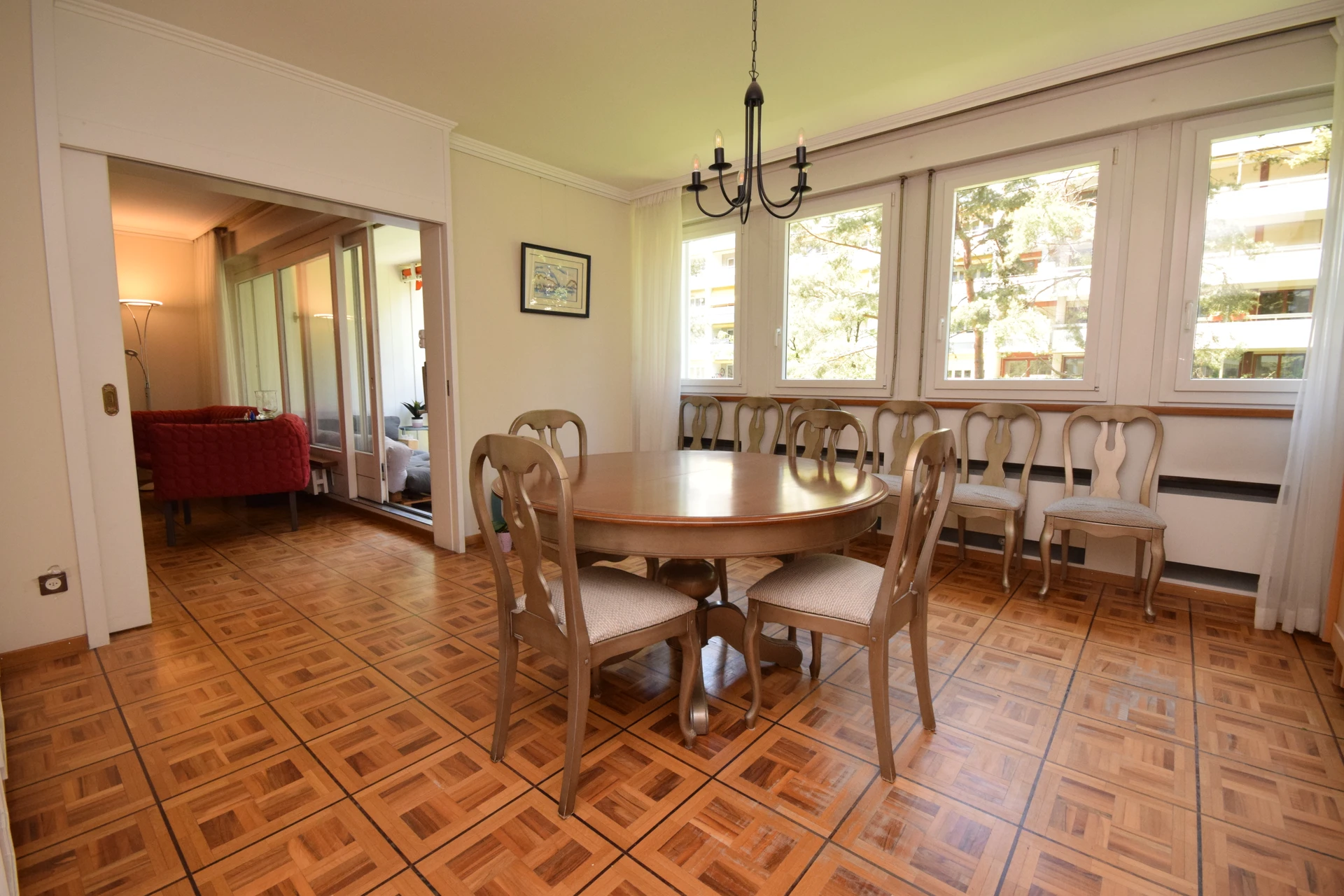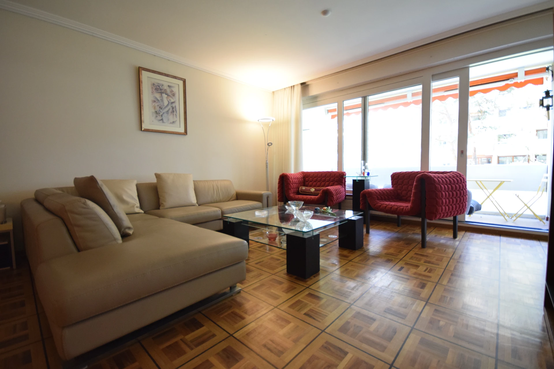Bel appartement de 4.5 pièces de 126m² dans un immeuble historique du quartier du Centre. Cette propriété de caractère allie charme ancien et modernité. Caractéristiques : entrée avec vestiaire, séjour avec cheminée et accès au balcon de 21m², cuisine ouverte équipée, 3 chambres à coucher, salle de bains avec baignoire et douche, WC séparé, cave et place de parc intérieure. À deux pas des commerces et des transports publics.