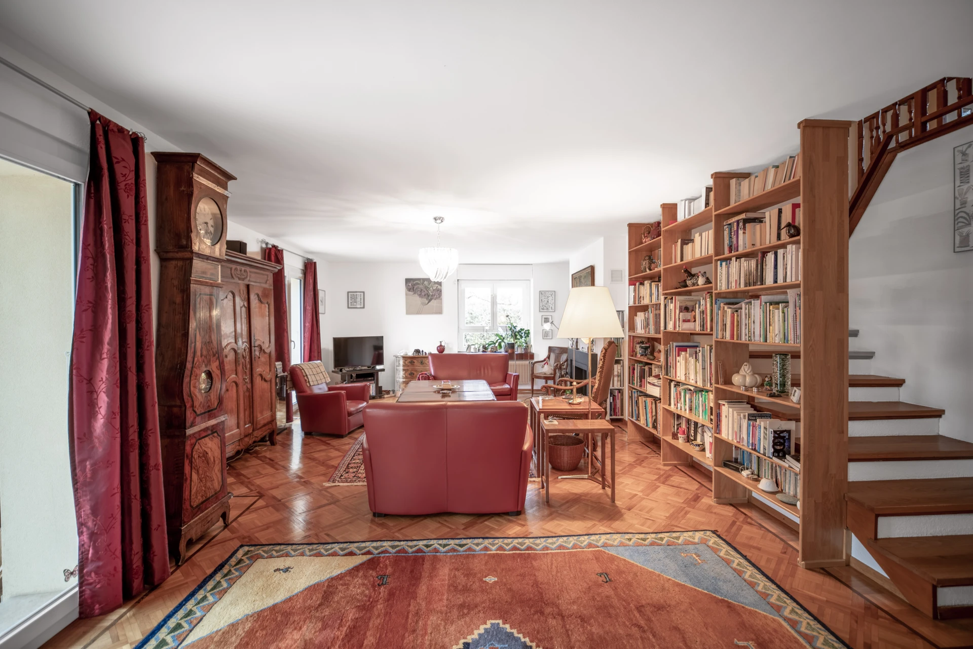 Superbe villa contemporaine de 380m² sur un terrain de 1200m² dans le quartier résidentiel de la Plaine. Cette propriété d'exception offre une vue imprenable sur le lac Léman et les montagnes. Caractéristiques principales : entrée majestueuse, grand séjour avec cheminée et accès à la terrasse de 100m², cuisine professionnelle entièrement équipée, bureau, 4 chambres à coucher dont une suite parentale avec dressing et salle de bains en marbre, 3 autres salles de bains, sauna, cave à vin, garage double, jardin paysager de 800m². Domotique complète, système de sécurité, panneaux solaires et pompe à chaleur. À 5 minutes du centre-ville et des écoles.